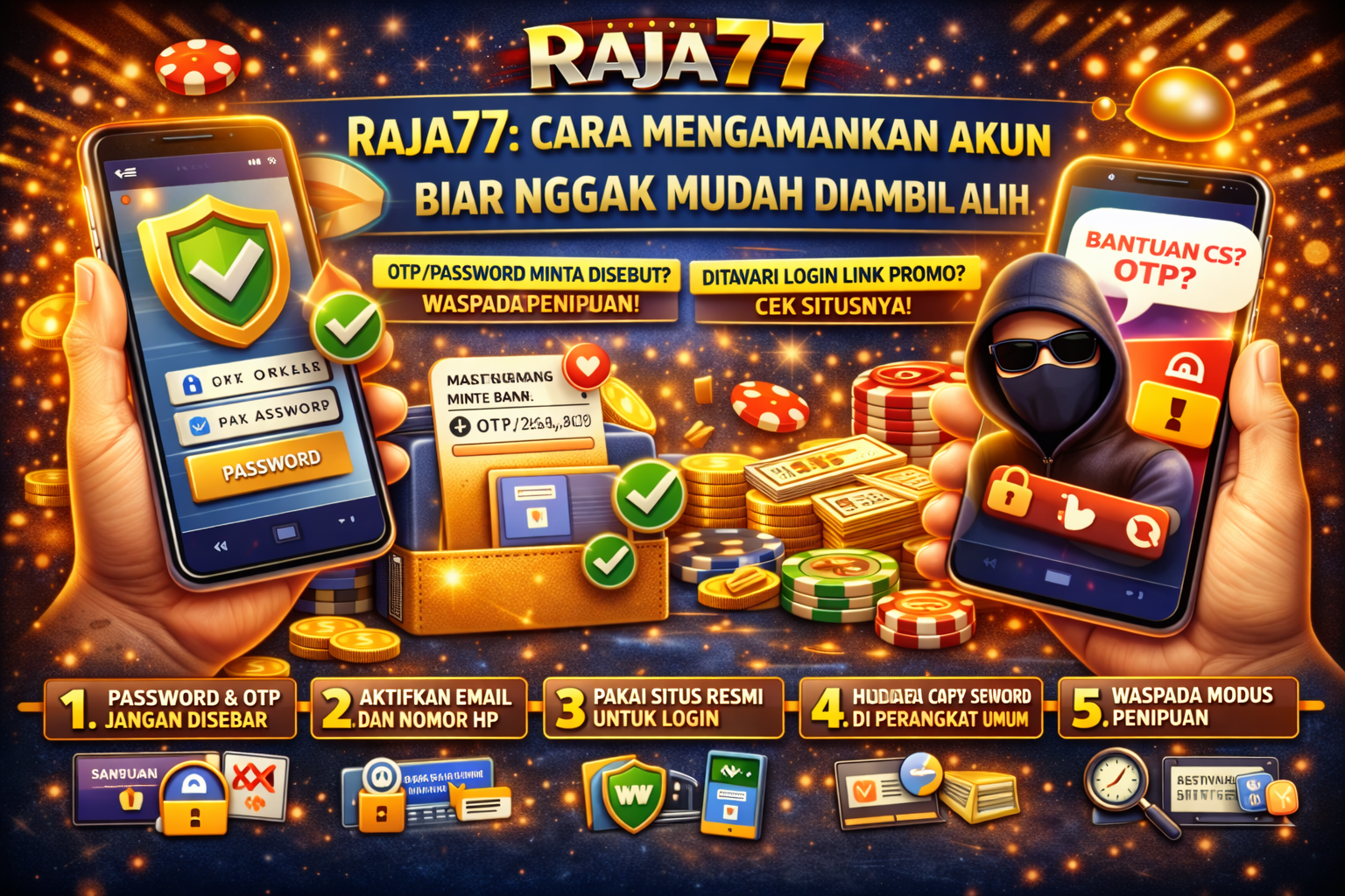 Mengamankan akun RAJA77 itu bukan soal paranoia—ini soal kebiasaan kecil yang bikin kamu main slot lebih tenang. Password unik, OTP dijaga, email/nomor HP aman, dan tidak sembarang klik link adalah fondasi utama supaya akun tidak mudah diambil alih.